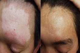 4.白斑呈对称性分布。这两种类型的白癜风在皮损面积上有差别。