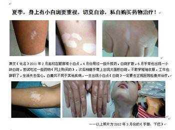 白癜风中医称“癜风”或“白驳风”,是一种色素脱落的皮肤病,开始出现无自觉症状的局部皮肤变白,逐渐扩大,白斑是淡白色的或乳白色,形状大小不异,境界清楚,表面光滑,无皮屑。