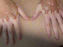 4、肢端型白癜风色素脱失的程度因人而异,因部位而异,也可因脱色程度不同而显示白、灰白、近正常肤色三种色调。
