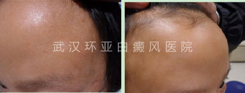 ▲病史:患者20天前发现面部点状色素脱失,曾在外院口服药及擦药无效,来我院治疗