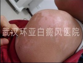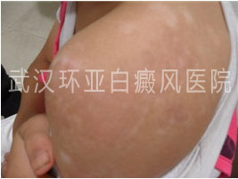 ▲病史:患儿半年前发现肩部片状白斑,后发展到面、颈部,在外院使用口服:白癜风丸、转移因子,外用擦药:白林酊、卤米松,治疗效果不佳今来我院治疗。